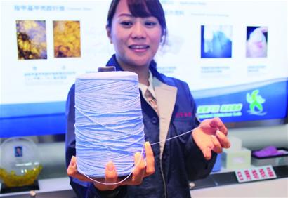 當記者來到位于黃島區海濱一路的明月海藻集團時,明月海藻技術中心主任李可昌向記者展示了手中的一塊“紗布”。雖然看上去這塊“紗布”與普通紗布沒有區別,但當其接觸生理鹽水之后,卻發生了奇妙的變化,原先蓬松的“棉絮”逐漸凝結。較終變成了一塊類似明膠的固體。
