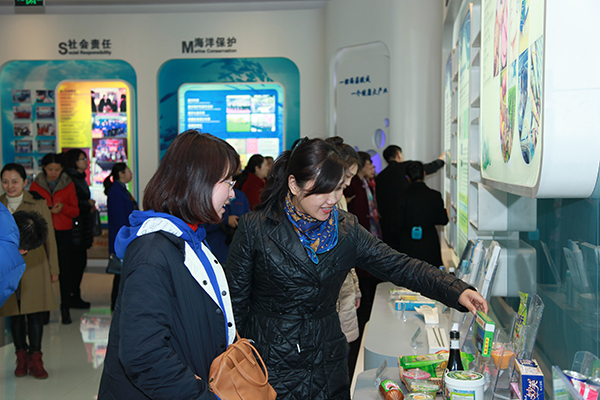 在青島明月海藻生物科技館內(nèi),通過系統(tǒng)了解海藻生物產(chǎn)業(yè)、參觀海藻活性物質(zhì)國家重點(diǎn)實(shí)驗(yàn)室,大家仿佛進(jìn)入了神奇的海藻世界。從化妝品、食品到保健品,一片面膜,一件海帶食品,甚至藥用的創(chuàng)可貼,都是用海藻加工而成的的天然、綠色、環(huán)保型高科技產(chǎn)品,令大家贊嘆不已。